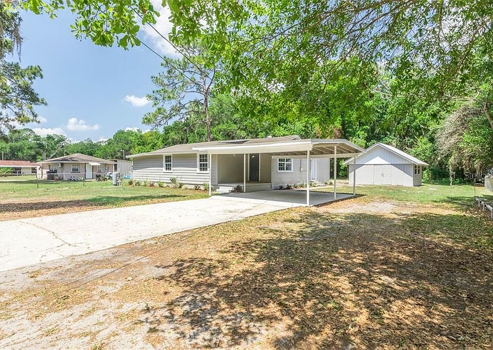 WOW, a remodeled home that's updated and move in ready! The perfect home to tinker in the large detached concrete block workshop as well as a nice sized yard. With no HOA you can bring your boat/RV & trucks. Not only are the exterior amenities fantastic, the interior of the home has been nicely renovated as well. This 3 bedroom, 1 bathroom home features a new a/c, new septic and drainfield, new hot water heater, brand new kitchen with new countertops, new cabinets, stainless-steel appliances, an updated bathroom, a fresh coat of interior/exterior paint, new flooring, new lights mirrors and fans and much more. Exterior features include a carport, a great yard with mature trees throughout the property and a large detached workshop. This home has everything you could want & still offers room for expansion. This great property will not last long. USDA eligible area for qualified buyers with little to no money down, call for details! No HOA!