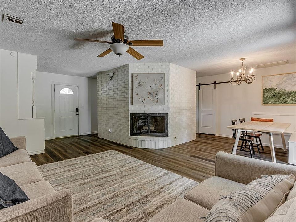 This beautifully updated 3-bedroom, 2-bath home blends charm, style, and functionality—perfectly situated in the heart of Yukon. This home backs up to Kimbell Park, offering a peaceful setting and extra green space just beyond the backyard. Inside, the fully renovated kitchen (2021) features marble countertops, custom cabinetry, newer appliances, a farmhouse sink, added counter space, and a floor-to-ceiling pantry. The living areas showcase updated laminate flooring, fresh paint, a custom-built breakfast nook, a walk-in pantry, and built-in storage including a storage bench and floor-to-ceiling shelving. The front bathroom includes tile flooring and a modern vanity, also completed in 2021. Carpeted bedrooms provide cozy comfort, while the nicely converted garage adds even more functionality with built-ins, a dedicated storage room, and a laundry area. Outside, enjoy peace of mind with a newer roof (2023), HVAC system (2019), an in-ground storm shelter, and a backyard greenhouse. This move-in ready gem offers thoughtful upgrades, smart design, and an unbeatable location.