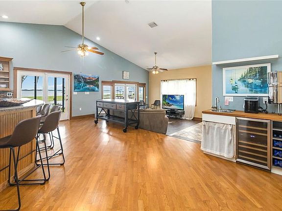 Waterfront livingFlexible bonus spacePanoramic water viewsBack patioCustom cabinetrySpacious kitchen