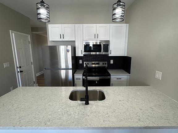 Newly renovated with a modern aesthetic. Everything is brand new! Beautiful kitchen with a large island, quartz countertops, over the range microwave, full size fridge, and dishwasher. White shaker cabinet style with black hardware. There are 2 spacious bedrooms with ample closet spaces. Nice sized bathroom with tub & shower. Vinyl plank laminate waterproof flooring throughout. Baseboard electric heating. Brand new electric hot water heater. Be the first to make this beautiful apartment your new home. Walking distance to stores & public transportation. This unit is the largest at 800 sq. ft. In comparison to others listed for rent with 10 foot ceilings.