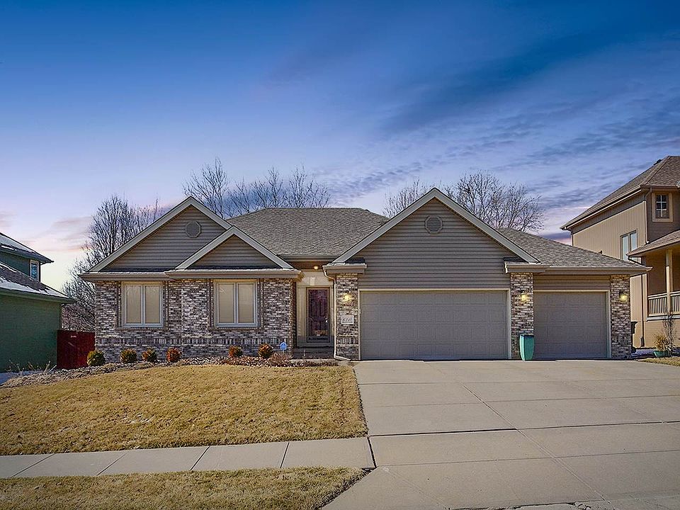 You will love this 4-bedroom ranch home that's close to a park and the schools. Large great room with fireplace looks out to the backyard. Kithchen has abundance of storage, hardwood floors, stainless steel appliances, and a breakfast bar. All appliances and the water softener are included. There are extra-large bedrooms, some vaulted ceilings, large open walkout basement including a bedroom, office, family room, rec room and 2nd kitchen. The exterior is vinyl siding and brick. There is a large deck and patio. This is a quality built home and well cared for. The extra roomy 3-car garage has a separate set of steps as a 2nd entrance into the basement. This home is also equipped with sprinklers and a fenced yard. Roof 9 years old, furnace and AC 2012. Don't wait - come see this one today!