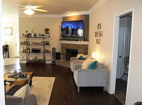 REMARKABLE 4 BEDROOM 2 BATH BETENBOUGH RESALE IN LEGENDS PARK! NEWER NEIGHBORHOOD WITH CLOSE ACCESS TO SCHOOL! OPEN FLOOR PLAN ALLOWS ABUNDANCE OF NATURAL LIGHT THROUGH! BEAUTIFUL WOOD BURNING BRICK FIREPLACE IN LIVING AREA! STUNNING WOOD FLOORING IN ENTRANCE & LIVING AREA! AMAZING MASTER SUITE OFFERS DBL SINKS IN VANITY, SEP TUB & SHOWER! GREAT BEDROOMS SIZES! COVERED FRONT & BACK PATIOS!