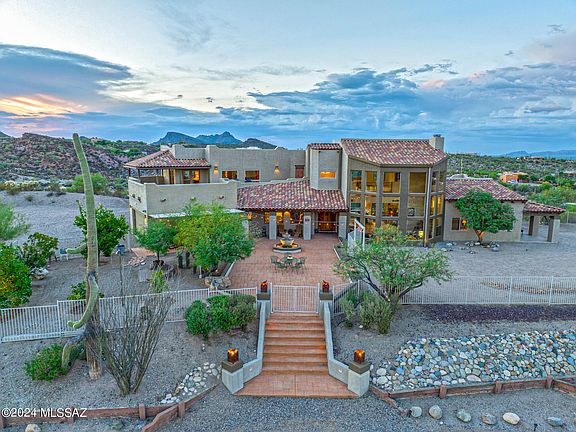 Welcome to this exceptional property that offers over 5 acres of premium land, perfect for your equestrian dreams or private oasis. The barn features stalls, a tack room and plenty of room for hay storage. Enjoy riding and hiking trails footsteps from your front door. This is truly outdoor living at its best! Relax and entertain on your private patios or multiple decks, surrounded by lush landscaping and breathtaking panoramic views. Step inside to find a a masterpiece of modern accents combined with old world design, featuring stunning floor-to-ceiling windows that offer breathtaking views that flood the interior with natural light. The heart of the home is the gourmet kitchen that is a chef's dream. Equipped with top-of-the-line appliances and sleek cabinetry and a walk in pantry. Take a look at the special features list to get a true sense of the value this home has to offer. Start your new year by moving into this one of a kind home that can offer a new family many opportunities to grow for years to come. Close to the U of A, shopping, schools and downtown Tucson.