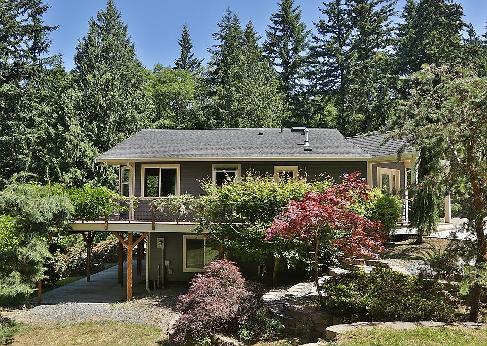 This 3 bdrm home is located at the end of a tree lined road w/gated entry to +/- 5 acres of cedars, mature landscaping, various fruit tress, bird houses, & garden space. A wrap around deck surrounds the home to enjoy this beauty. A detached two car garage with bonus rm above garage with power and a covered carport for extra storage. Separate cabin w/tongue and grooved pine ceiling & plumbed for a kitchen awaits your finishing touches. This well built cedar sided home awaits you.
