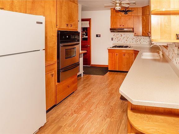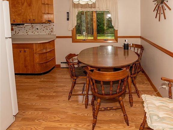 In the quaint countryside stood a meticulously maintained one-owner ranch. It sits on an oversized lot, with a pristine exterior and well-tended greenery. This home has an eat-in kitchen, bathed in natural light streaming through the windows. The living room is warm and bright. With every step, one could sense the care and love that had been poured into maintaining this dwelling. Three spacious bedrooms offer a place of serenity and peace. One full bath. Descending into the finished basement, one was welcomed by a grand stone fireplace. A 3-season sunroom, thoughtfully situated off the garage offers another peaceful retreat. The deck overlooks a private backyard. Gas hot water boiler heat w/ central air. New leaf filter gutters. A separate 2-stall heated garage also awaits...an ideal haven for a car enthusiast or a workshop for the creative soul.
