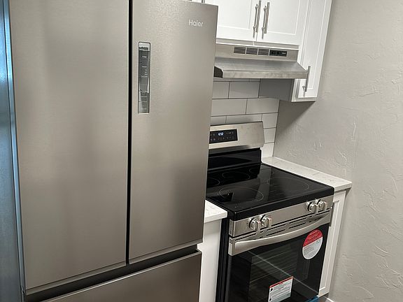 Remodeled common areaStainless-steel appliancesTiled backsplashGranite countertopsShaker cabinetsPlenty of closet spaceBathtub shower combo