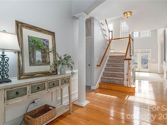 5 BR & 3.5 Bath home on .77 acres of land in Mint Hill. Located in the beautiful Ellington Farms neighborhood. Primary retreat located on the main floor with tile, double sink vanity, large corner soaking tub, separate shower, built-in cabinets. Grand 2 story living room with built in cabinets, fireplace and open to staircase. Additional features includes luxury vinyl tile, hardwoods, tile and clean neutral finishes. Amazing backyard with covered back porch and deck overlooking wooded area.