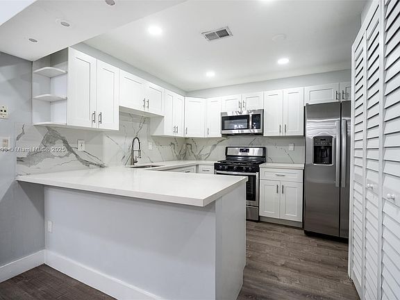 This is a Stunner! Spacious 1,550 SF fully renovated 3-bed, 2-bath townhome in the guard-gated community of Snapper Village! Enjoy an open-concept layout with quartz countertops, sleek flooring, recessed lighting, and spa-style baths. Two private balconies, in-unit washer/dryer, and large walk-in closets add convenience. Resort-style amenities include pool, clubhouse, tennis, playground, and walking paths. HOA fees cover internet, cable, water, and exterior insurance including flood. 40-year recertification & exterior updates complete. Reserves cover: roof, doors, painting, plumbing, gutters! Assigned + guest parking. Lease immediately! Prime location near shops, dining & entertainment. Only 10% needed to own this beautiful 3 bedroom townhome!