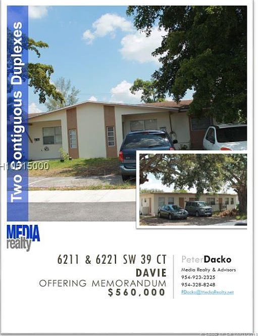 Two Contiguous Duplexes with 4 (2/1) apts located in the CBD area and in close proximity of the Nova Southeastern Campus. The combined lot size is 23745 and possesses the attractive zoning of RAC-TC which encourages mixed-use village development. This area is known as Downtown Davie, and is located within the Community Redevelopment Area.