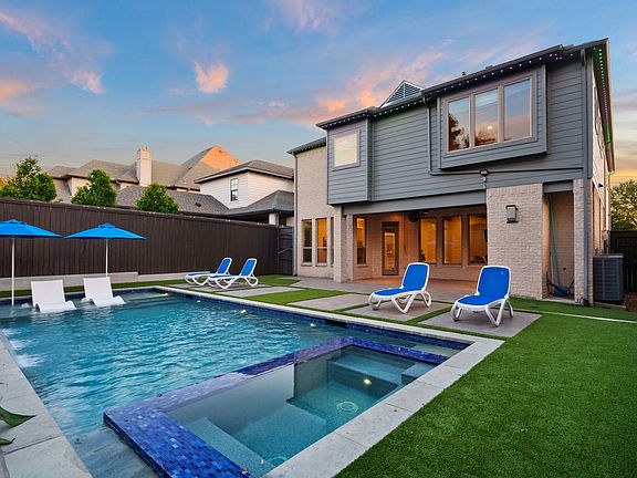 Located on a quiet street in Lakewood Heights near Tietze Park, this beautifully designed home blends timeless sophistication with modern comfort. With plenty of space and thoughtful touches, it offers a warm and inviting environment for both everyday living and weekend fun. Sunlight floods the open-concept living and dining areas, highlighted by freshly refinished light wood floors. Featuring four spacious bedrooms, an office, a media room, and multiple living spaces, there's room for everyone to relax and recharge. The spacious kitchen is outfitted with Viking commercial-grade appliances and plenty of counter space, making meal prep a breeze. Each bedroom has its own en-suite bath for added privacy and comfort. Outside, enjoy your own backyard oasis with a covered patio, a beautiful, custom-built pool with water features, and a turfed yard. Jellyfish Lighting around the outside of the house creates a versatile ambiance, whether you’re celebrating holidays or the changing of the seasons. This charming home is a fantastic retreat for exploring the Lakewood area and creating new memories.