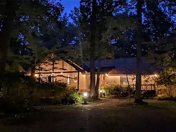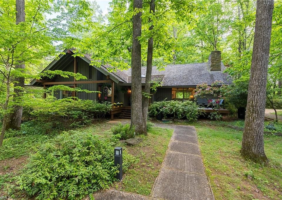 Come home to your own personal private nature retreat. This modern home sits on approx 1.75 acres bordering the neighborhood pond and Lake Townsend. Custom designed by architect Norman Zimmerman, designer of Bob Timberlake's art gallery, you'll find numerous upscale and quality features. Beautiful recent enhancements including a luxury kitchen remodel and so much more, all added with immense care and consideration of the original design (see upgrade list). Two statement Virginia fieldstone fireplaces, the living room is lodge style for cozy nights. Rare wormy chestnut paneling, recessed 3 door wet bar, stunning remodeled primary and hall bathrooms. The third bedroom offers its own full bath, deck/entrance and a kitchenette allowing for flexibility. Each bedroom and living space has its own entrance with easy access to one of the four decks overlooking expansive, serene nature views. Enjoy and unwind in the arboretum-like greenspace with walking trails & water views. Low county taxes