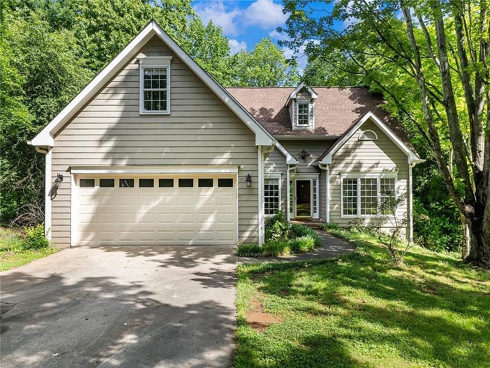 Welcome to this fabulous home in a prime location! The spacious primary suite is conveniently located on the main floor, complemented by soaring two-story ceilings in the family room and a cozy wood-burning fireplace. The main level features brand new flooring throughout, adding a fresh and modern feel. The kitchen is equipped with all-new, smudge-free stainless steel appliances—ready for everyday living and entertaining. Upstairs, you’ll find two additional bedrooms, including a generously sized bonus room that can serve as a bedroom, office, or playroom. The full bathroom offers dual vanities and a separate tub area for added privacy and convenience. The partially finished basement is sheetrocked and offers endless potential—perfect for a home theater, guest suite, office, gym, workshop, or extra storage space. The exterior siding of the house was replaced and painted in 2009 with Hardy Plank Siding. The house was “house wrapped with “Tyvek”. Outside, enjoy the peace and privacy of a wooded backyard on nearly an acre of land. The optional HOA offers access to a pool and recreation area. This home is nestled in a lovely community within walking distance to charming downtown Flowery Branch and just a stone’s throw from beautiful Lake Lanier.
