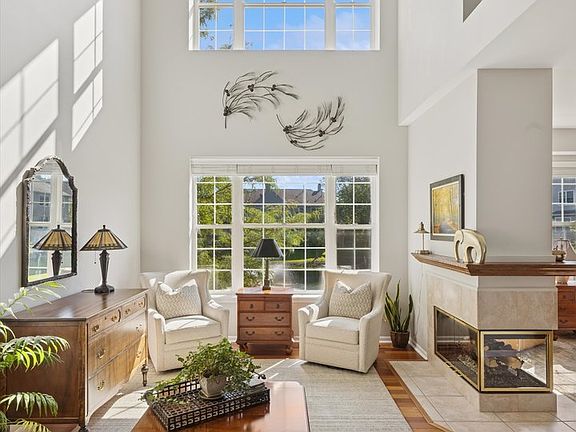 Experience the best of Ashbrook in this bright, luxurious townhome on the pond. Enter to a welcoming foyer and dining room, adjacent to a soaring 2-story living room, overlooking the pond. Sharing a double-sided fireplace with the living room, is a cozy family room and refreshed, open kitchen. A laundry room and powder room complete the first floor. Upstairs you will find a gracious primary ensuite with walk-in closet, spa-like bath, a second bedroom and full bath, and a generous loft, perfect for an office or gym. The walkout basement is a real standout, with a spacious recreation room, full bath, and patio on the pond. Owners have made several thoughtful updates, including a beautifully refreshed kitchen and fireplace. Ashbrook's lush landscape, 3 sparkling ponds, private playground and close proximity to expressways, dining and shopping, make it a coveted destination.