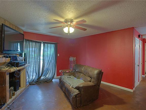 SOLD AS IS. Some Updates have been completed. Family room features concrete floors, corner brick wood burning fireplace and views of the backyard. Spacious eat in kitchen with electric range, tile counter tops, tile back splash, tile flooring and pantry. Master Suite features tile walk in shower, lots of natural light and more. 2 additional bedrooms and a additional bath with tub and shower. Covered patio overlooking the backyard.