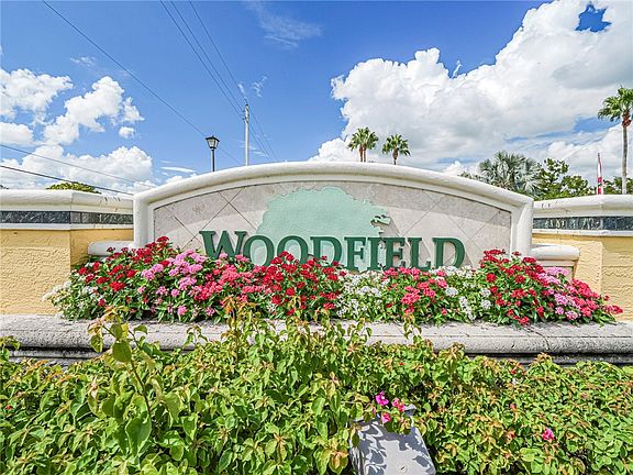 Come see this beautiful 3/2 bath home in the lovely gated 55+community of Woodfield. Top notch amenities includes resort like pool, clubhouse with gym, billiards, library, card rooms, banquet room, high class tennis courts, bocce ball and more. Active social & recreational community. This home backs up to a wooded preserve, so you can enjoy peace and quiet. The kitchen features updated stainless steel appliances and granite counters. The interior colors flow nicely. HOA includes internet, lawn and landscape care. Shopping and dining are minutes away. Furnishings negotiable. rm sizes approx
