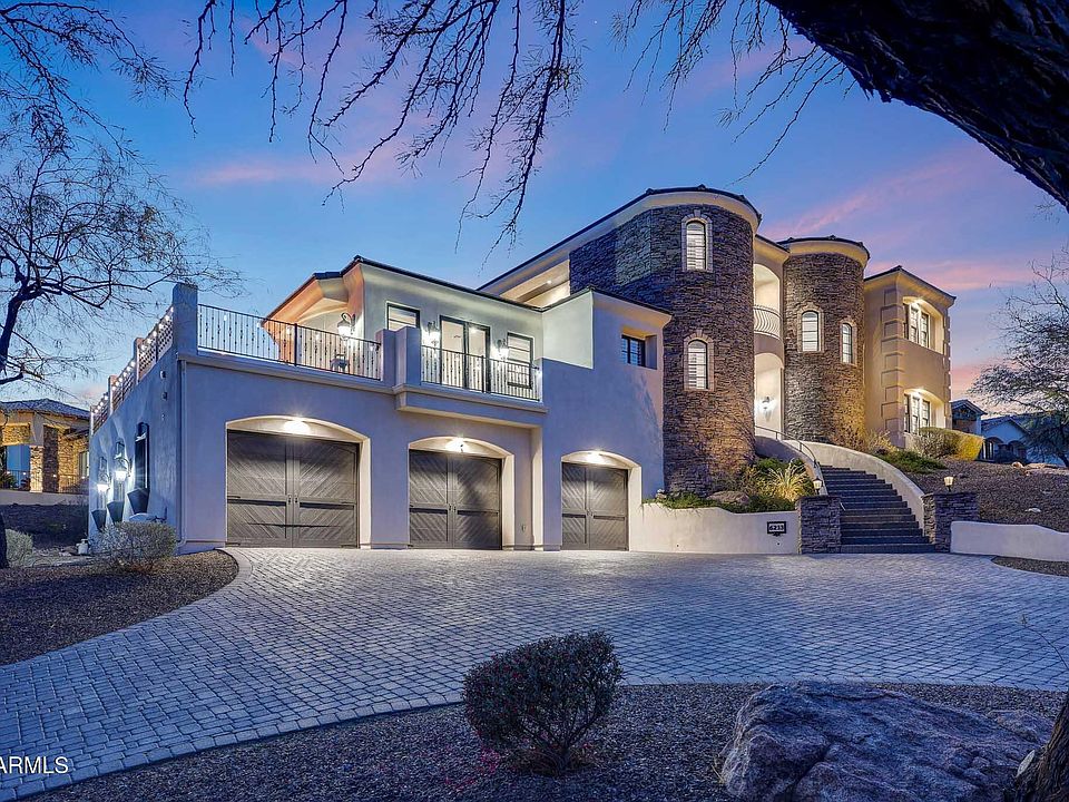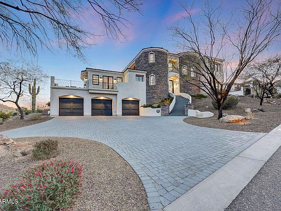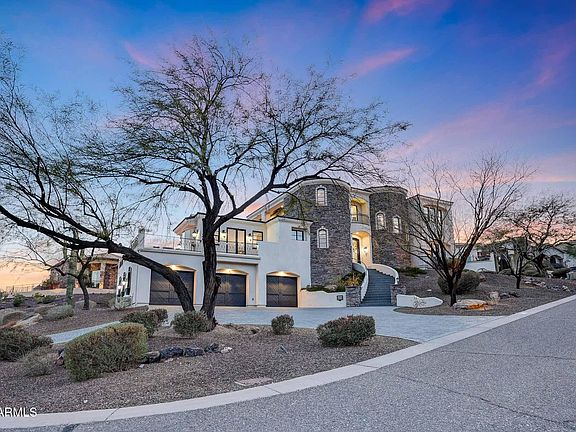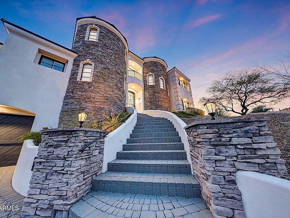Indulge in the pinnacle of hillside living within the prestigious gated community of Tuscany Hills. This recently renovated custom estate, situated on a premier ½-acre view lot, offers breathtaking 360-degree panoramic views of the city lights & picturesque mountains. Not only is the home meticulously designed, but each floor is conveniently connected by both stairs and elevator, exuding sophistication and comfort.