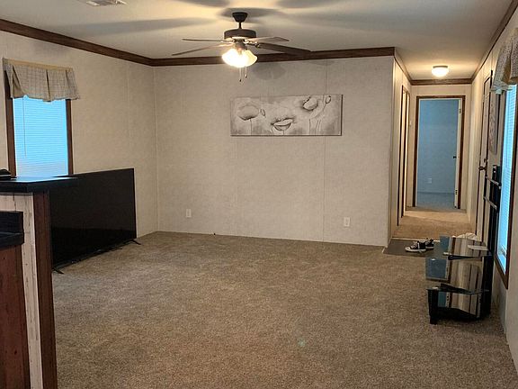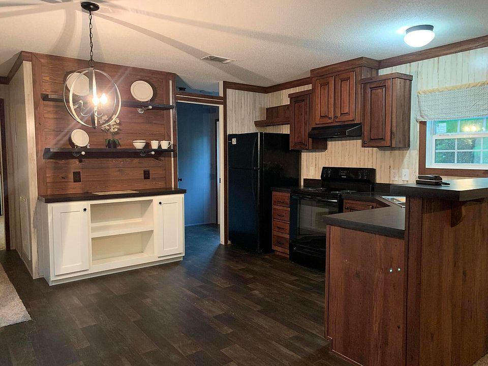 Country living but minutes to shopping and restaurants. This beautiful 2020 mobile home was only lived in one year! Smells and looks brand new. Beautiful kitchen with accent wall in rich wood with display shelves. Bathrooms feature tiled showers with large rain shower heads.This home sits on 1.1 acre and has fenced yard.There is a hookup for a camper with power and water. Call today before its gone!!PLEASE REMOVE SHOES!!