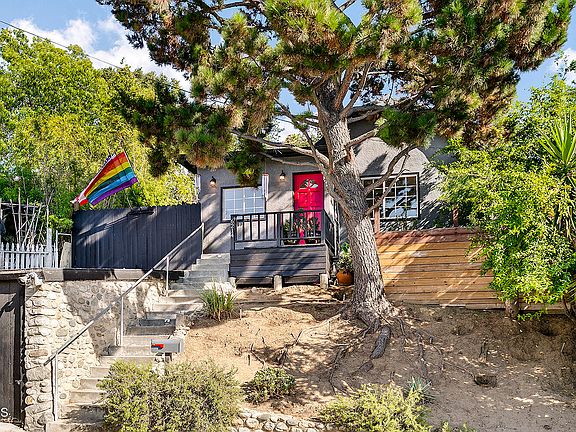 Hillside escape in the heart of Highland Park. Smaller craftsman home on quiet street is less than a mile to bars/restaurants/shops but offers privacy with expansive lot. 2 bedrooms and bonus room for use as office or 3rd bedroom. House exudes vintage charm with beautiful hardwood floors in living room and bedrooms, Mexican Saltillo tile in kitchen and dining area. Bathroom fully renovated in summer 2021 features ample storage, custom tile, soaking tub. Tiered backyard has endless possibilities for gardening, entertaining, relaxing. Side deck and upper patio. Mature trees provide shade and seclusion - pine, pomegranate, cypress, even a 100 year old California live oak! Remodeled outbuilding with wired electrical for office/hang out space with mountain views. Come check out this magical spot before it disappears.