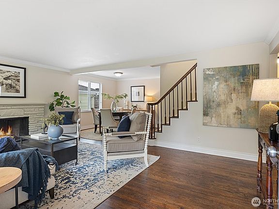 Exquisite 4 bedroom 3 bath gem at the end of a peaceful dead-end street 50 yards to Bryant Park. Updated open kitchen with sitting bar. Great floor plan. Family room off the kitchen. Formal dining area adds a touch of elegance to your meals & celebrations. Refinished oak floors & designer paint create a canvas of warmth & sophistication. Partially finished bonus room in basement, complete with adjacent 3/4 bath & separate entrance, offers endless possibilities. Transform it into an ADU, home office, or creative space tailored to your needs. Most systems updated including 2 year old central AC. Located in sought after Hawthorne Hills only minutes to Children's, UW, 520, downtown & Amazon. Modern updates with timeless charm!