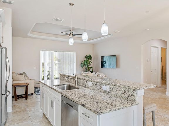 AVAILABLE NOW. MONTHLY RENTAL OR ANNUAL. FULLY FURNISHED perfect sized 3 bedroom 2 bath house. High ceilings and plenty of windows create a bright and airy ambiance throughout. This house bolsters a very spacious open concept of the living room/dinning & kitchen with 12' ceilings. The kitchen also includes a full breakfast bar seating, the abundance of cabinetry, granite countertops, and stainless steel appliances make it a cook's delight. The living room, dining room combination is great for entertaining and casual living. Enjoy the large master bedroom with a large walk-in closet, as well as a master bath with a double vanity and huge double shower. The lanai has plenty of space for grilling, and entertaining friends and family also features an outdoor shower, great for rinsing after a beach trip. This property also features large 2 car garage with epoxy sealed floors. Located about 10 minutes to Manasota Key Beach. It's also conveniently located near various amenities such as Publix, Winn-Dixie, Walmart and more. Whole house is ADA compliant (wheelchair accessible). Reach out to the listing agent about more information. Property can rented monthly or as a long term rental. Reach out to the leasing agent for more information House available to be rented as month to month or annual lease