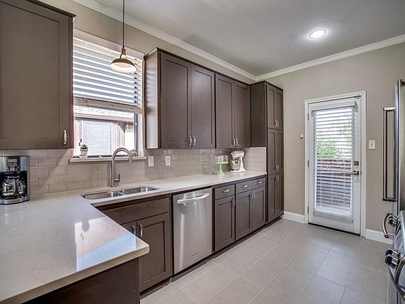 New updated master bathSoft natural lightStainless appliancesViews of the backyardLush green grassHigh windowsCovered patio