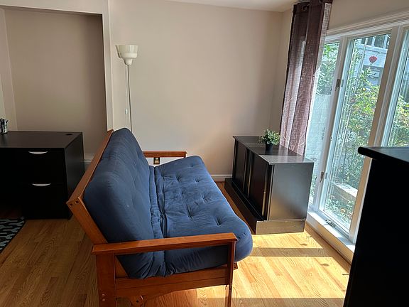 Private entranceRemodeled bi-level furnished spaceSofa bedNewly remodeled bathroomWood floorsEat-in kitchenetteOnsite parking space