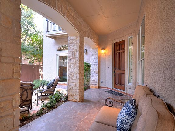 Lovely garden home in highly desired gated section of Park West at Circle C. 3 bedroom 2.5 bathroom main house with 1 bed, 1 bath detached casita. Wonderful for a home office set-up, or serves well as a mother-in-law plan. Main house has two owner's suites, no carpet and large, open concept kitchen. Private courtyards dot the property as masonry paths wind through the gardens to connect them. Tile roof. Very close to community pool, shopping and dining!