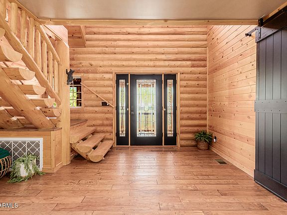 Special 4.99% fixed rate loan incentive!! Fully furnished, beautiful Full Log construction home is situated on the edge of the Tonto National Forrest with thousands of acres to explore. Enjoy mountain living at it finest, with unobstructed views, daily wildlife sightings, & the fresh mountain air! Notable features of this stunning home are: paid off solar, Tesla Powerwall battery, Generac backup generator, 2,500 gallon water backup water reserve tank, Starlink internet hardwired, & a state of the art camera monitoring system to keep an eye on the home while you are away. The ultimate off grid capable mountain retreat, with no HOA! Recent updates include: freshly chinked & stained, anew roof, new AC, alternative septic systems, new Anderson sliding doors, Bullfrog hot tub & much more