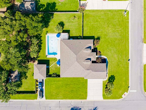 Welcome to this meticulously maintained 4-bedroom, 3-bathroom home, nestled in a desirable gated community on a beautifully landscaped corner lot. Step inside to an open-concept living space designed for entertaining. The expansive great room features stunning double trey ceilings and a wall of windows that flood the space with natural light and overlook the covered lanai and sparkling in-ground swimming pool. Adjacent to the great room, the dining area flows seamlessly into a chef’s dream kitchen—complete with a center island, quartz countertops, stainless steel appliances, walk-in pantry, and abundant cabinetry. A charming breakfast nook with a large picture window offers peaceful views of the lush backyard. The split-bedroom floor plan provides maximum privacy for the luxurious primary suite. This oversized retreat boasts trey ceilings, a private entrance to the lanai, and an en-suite bath featuring double vanities with quartz counters, a spacious walk-in tiled shower with bench seating and dual shower heads, private water closet, and two generous walk-in closets with direct access to the laundry room. Three additional bedrooms are all generously sized, each with ceiling fans and large closets. Two additional full baths serve these rooms—one with a tub/shower combo, the other with a walk-in shower and convenient access to the pool and lanai area. The outdoor space is truly a private oasis. Enjoy a fully fenced backyard with a large covered lanai, sparkling pool, fire pit, water feature with goldfish, and a lush lawn and plantings. A 20x24 workshop offers endless possibilities, while the attached 3-car garage and detached 1-car garage provide ample storage for vehicles, tools, or hobbies. Additional features include a whole-house generator and high-end finishes throughout. This one-owner home is truly move-in ready and perfect for those seeking quality, privacy, and exceptional outdoor living. Don’t miss the opportunity to make this beautiful home yours!