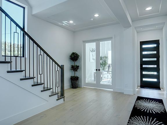 Electric fireplacePrivate balconyIndoor loftStriking entrywayOpen deckMagnificent viewsWaterfall-edged island