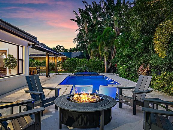 This Masterfully redesigned, fully renovated CBS home is straight out of Architectural Digest! From the light and airy tongue and groove vaulted wood ceilings and 12'' wide ''wood plank'' porcelain flooring to the chef inspired kitchen complete with custom European cabinetry and oversized island, designer selected quartz counters/backsplash, Thermador Stainless steel appliances and built in breakfast room coffee/wine bar and 120 bottle wine frig, this exquisitely curated home with solid core 8' interior doors and custom impact front door is absolutely turn key! **Expanded floor plan(21) , Impact glass windows/sliding glass doors (21), New HVAC/Ductwork (21), New Tankless hot water heater(21), Spray Foam insulation(21), New flat roof (22), New pool/spa (22)** See ''more'' and video! Take in the ambience of the electric fireplace in the spacious great room or effortlessly entertain in the formal dining room or casual breakfast room and spend quiet evenings on the expansive limestone patio. The elegant owner's suite comes complete with porcelain floors and beautifully created "spa like" master bathroom including designer inspired marble shower with frameless door & stand alone tub. Professionally designed landscaping frames the resort style heated salt water pool/spa & sun shelf surrounded by limestone. Custom closets throughout, expanded laundry room with cabinets & storage closet, designer lighting, 500 gallon propane tank & Epoxy finish garage floor complete the package! Located only minutes to all things Jupiter: white sand beaches, stellar boating, boutique shops, waterfront dining and many of the finest golf courses in Florida. This private tropical oasis is the perfect place to call your new home!