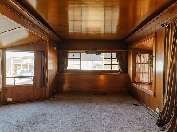 Experience 55+ living at its finest! Step inside this beautifully remodeled home featuring rich wood-paneled walls and elegant curved, up-lit ceilingsbringing to mind the refined luxury of a private yacht. Every detail has been thoughtfully updated, featuring luxury vinyl plank flooring, granite countertops, new carpet in the living room and bedroom, a newer gas range, a brand-new HVAC system, and fresh exterior paint. Enjoy a completely updated bathroom with a modern vanity and walk-in shower with built-in seat. The spacious front living room boasts dual bay windows on each side, creating a light and open feel, while solid wood cabinetry offers an abundance of storage throughout. The spacious bedroom features a full wall of built-insa true nod to craftsmanship that stands the test of time. Outside, you'll find a full-length covered patio and a newer fenced area perfect for your furry companion. Dual covered parking areas on both sides and storage shed provide plenty of space for vehicles and belongings. Located in a private community offering guest and RV parking, a green park, and resident garden plots for summer vegetables. Conveniently close to shopping and with easy freeway access, this home combines comfort, charm, and practicality in one perfect package!