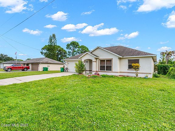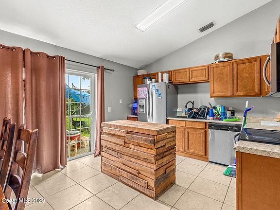 Look no further--the perfect home for your family is right here! This charming 3/2 ranch-style home with a newer roof in Port St. John features a split floor plan, ideal for a growing family. Charming kitchen features stone counters, stone backsplash, stainless steel appliances, and an island. Bedrooms have vaulted ceilings and ceiling fans. Primary bedroom features a walk-in closet, large bathroom with double sinks, a garden tub, and a separate shower. Two-car garage offers plenty of space for storage and functionality. Spacious fenced-in backyard includes a shed. Don't sleep on this great property! Seller has audio/video equipment in use at the property during showings.