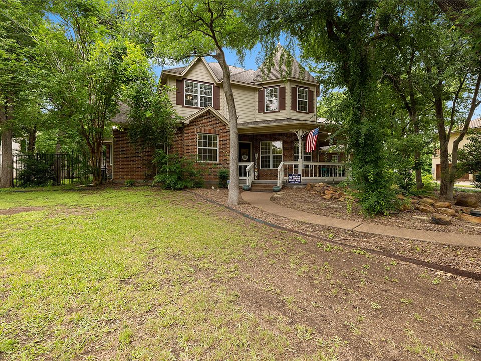 Welcome to the prestigious gated community of River Bend Estates, nestled in North East Fort Worth. Enjoy 1.17 acres of land adorned with mature trees. The recently renovated pool is enclosed to let in all the fresh air and none of the bugs or leaves. The spacious 4-car garage is ideal for those looking for extra space for projects or storage. The lower level features a lovely kitchen, with 2 pantries, that opens into an inviting living area with tall ceilings that allow for a view of the second floor. The generously sized primary suite is on the first floor, as well as an office space. There are 2 dining areas perfect for entertaining. Upstairs, you will find 2 additional full bathrooms and 3 bedrooms as well as a generously sized game room. There is even a laundry chute that drops laundry from the second floor into the large laundry room on the first floor.