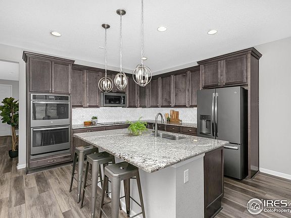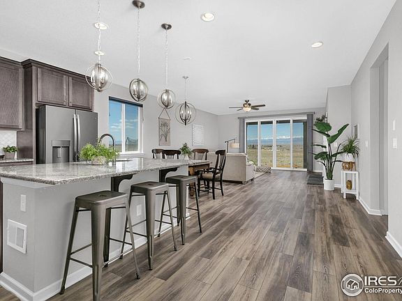 The Colorado home you've been waiting for! Almost 2000 finished square feet on each level and shows like it's brand new! This incredible Richmond (Arlington) ranch with a fantastic 3 car garage is settled on a quiet street with breathtaking Rocky Mountain and open space views, and just one block from the Wyndham Hill soccer park. Luxury wide plank flooring welcomes you inside and flows beautifully through the whole main floor. The generous gourmet kitchen has an awesome center island, double ovens, flawless granite, striking backsplash, under cabinet lighting and a massive pantry. The gas fireplace has stacked stone that matches the front exterior of the house, but doesn't highlight the room quite like that view out the 10' double slider back door! The fully extended and covered west facing back patio is the place to be, especially with the electric shades to filter the evening sun. Two more bedrooms finish off the main floor, one which has been finished without a closet, creating a great home office. Downstairs you'll find bedrooms 4 and 5, the third bathroom, large linen closet and an unfinished storage room. Enjoy the room darkening shades and upgraded eight foot doors throughout the house. Walk to the neighborhood outdoor pool this summer and walk or ride bike to Grand View Elementary this fall. Wyndham Hill is just two miles west of I25 and three miles to the Boulder County Line, zoned for Erie Middle and High School and just a quick drive to Erie and Frederick. Showings start Friday at 9am.