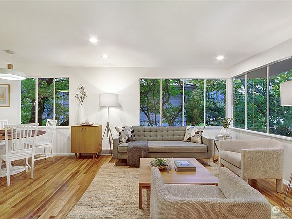 Gorgeously remodeled mid-century home in amazing Bryant location! This 4 bedroom, 1.75 bathroom, 2,400 square foot home is filled with natural light and features 3 bedrooms on the main floor. Recent upgrades include beautiful new kitchen, remodeled bathrooms, fresh paint inside & out, refinished hardwoods & new flooring throughout. Lower level with huge rec room and 4th bedroom. Upper floor with two bonus rooms-great for play, home office, etc. Large & dreamy backyard is fully fenced with an adorable cottage waiting for your creative engagement. Around the corner from Bryant Neighborhood Park & PCC. Minutes from U-Village and all other amenities. Easy commute downtown or SLU for the return to office person in your life!