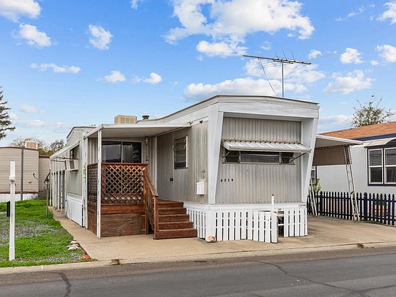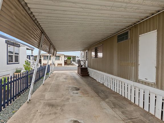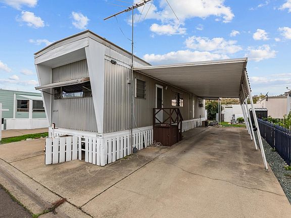Discover the best of 55+ living in this thoughtfully updated home! Warm wood accents and softly curved, uplighting-enhanced ceilings create a cozy, upscale atmosphere reminiscent of a luxury retreat. The front living area is bright and inviting, featuring dual bay windows that flood the space with natural light, paired with beautifully crafted wood cabinetry that provides exceptional storage throughout. The generously sized bedroom includes an entire wall of custom built-insquality craftsmanship you just don't find every day. Step outside to enjoy a full-length covered patio, along with a fenced section ideal for pets. Additional perks include covered parking and a storage shed, giving you ample room for vehicles, tools, and outdoor gear. This peaceful community offers guest and RV parking, a lush green space, and garden beds perfect for growing your own vegetables. With shopping nearby and quick access to the freeway, this home seamlessly blends convenience, charm, and functionality.