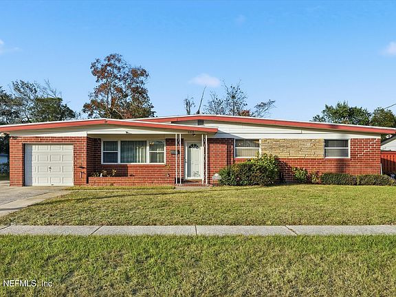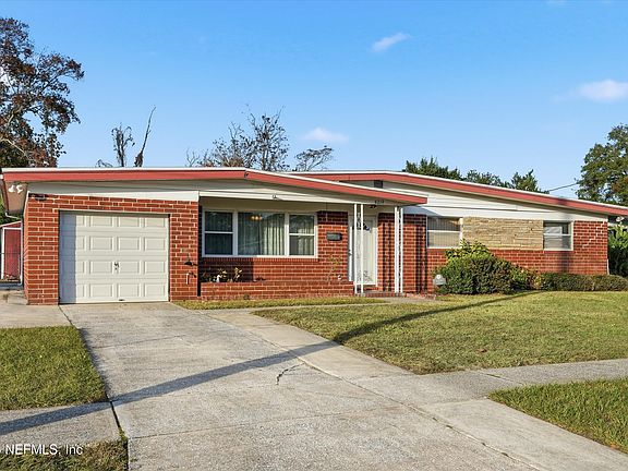 Solid Norwegian Brick construction home located on a wide street with well-maintained homes. Home offers solid wood kitchen cabinets, wall oven and cook top, solid wood doors throughout most of home, upgraded windows and sliding glass door, upgraded GE electrical panel, large screened rear porch, Trane HVAC 4 years new, terrazzo floor throughout under carpet, large laundry area with plenty of storage in garage, middle bedroom w/knotty pine panel walls, home re-piped, 1 1/2 bathrooms (two vanity-toilet rooms sharing one bathtub/shower room). Washer, dryer and shed to convey in as-is condition.