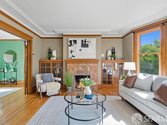 Live the Sutro Heights dream in this tastefully upgraded Marina/Craftsman-style home, where timeless charm meets modern comfort. Coved ceilings, original hardwood floors, period door frames, and a stunning Craftsman fireplace anchor the formal living and dining rooms. Enjoy two bedrooms upstairs, two-and-a-half updated bathrooms, plus a home office. A remodeled kitchen with quartz countertops, glass tile backsplash, tiled floor, and stainless steel Frigidaire Gallery appliances. New Marvin and Milgard windows, a new roof,solar panels and a Nest thermostat add comfort and efficiency. The two-car garage with ample storage is wired for an electric car charger. An unwarranted downstairs bonus space (~500sqft) with a full bath is ideal for office, gym, or flex use. On a level, nearly 4,000sqft lot with peek-a-boo ocean views, design your dream retreat, add an ADU, bocce court, or pizza oven. Entertain on the deck or unwind in the freshwater salt system hot tub. Blocks to Golden Gate Park, Ocean Beach, Lands End, Lincoln Park, and Balboa Street's shops and cafes. This is your authentic San Francisco sanctuary.