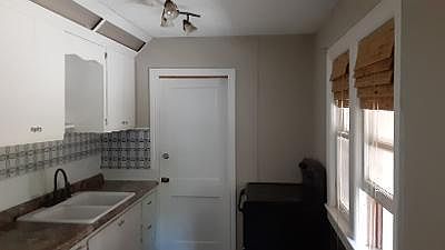 This front unit features tile floors throughout most of the home. Wood floors in the bedrooms. Kitchen features side by side fridge, twin well sink, glass top range, stone look counter, white cabinets with pewter handles and retro tile backsplash. Bathroom features low flow commode, pedestal sink, shower/tub combo with full tile surround. Large shared yard with shade trees. Come plant your garden.