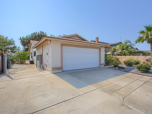 Single story, cute, quiet single family detached home on a cul-de-sac loop street. Large low maintenance brick patio with gardening area in side yard. No neighbor behind, home backs to canyon with relaxing views toward San Diego Bay. Access gate to canyon. Front courtyard perfect for outdoor entertaining or summer dining. Open layout, living room with brick fireplace and wood mantle, stainless steel kitchen appliances, room for RV/boat. Newer water supply lines. No HOA or Mello-Roos fees.