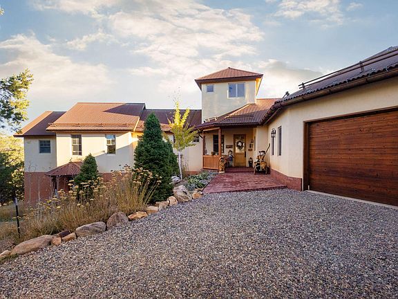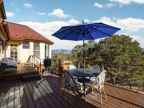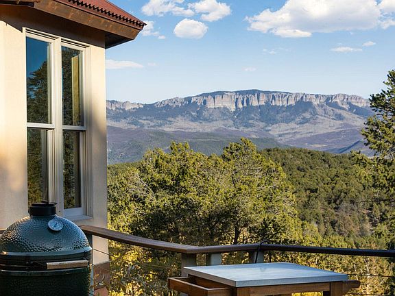 Private Loghill Mesa retreat on 4+ secluded acres with uninterrupted views of Mount Sneffels and the Cimarron Range from most every room and two income generating quarters. The 4,840 sq ft custom main home features 3 bedrooms plus flex spaces, vaulted ceilings, a two-sided wood-burning fireplace, a European-style kitchen with walk-in pantry, and heated wood floors. The main-level primary suite enjoys panoramic views, dual closets, and a spa-like bath. The lower level includes a private suite with full kitchen, bedroom, bath, and parking, plus an additional guest suite. A separate income-producing guest house sits above a two-car garage. With close proximity to Divide Ranch & Club, this serene property offers unmatched privacy, views and access to skiing, hiking, and nearby hot springs.