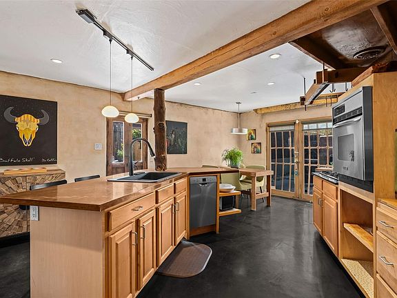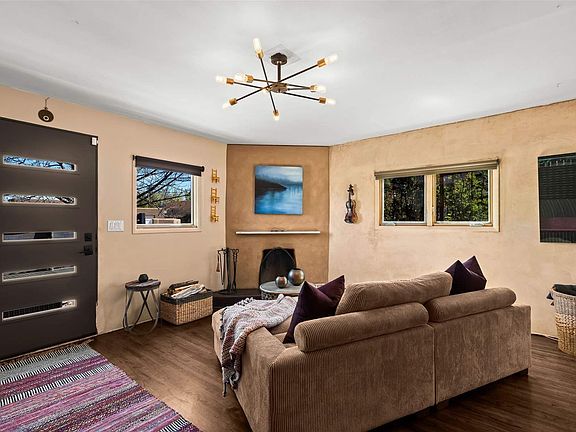 In the charming and centrally located Don Diego neighborhood, 622 Calle Grillo is a rare property with great character and flexibility. A two-bedroom main house and a detached one-bedroom casita sit opposite each other on a 0.15-acre lot, each with their own private and ample outdoor spaces. In an age of uniform whitebox houses, this classic build and styled home is refreshing for its connection to Santa Fe’s puebloan architectural roots. Lovingly owned and updated, the property has modern comforts and details wrapped in the warm colors and touches complimentary of its adobe and block construction. Exposed adobe and faux painted walls are the backdrop for an open living, kitchen and dining area that flows to the large backyard. Despite being in the heart of town, the mature landscaping, which includes 70-year-old rose bushes, a large Mountain Ash and gorgeous lilacs and fruit trees, create a treasured sense of privacy. The casita provides opportunities for a future owner, either as spacious guest accommodations or as an income generating asset for short or long term rentals. A short walk to the Railyard, the Cordova shopping center, and the Plaza make this one of the few homes that provide such great value within the epicenter of Santa Fe life.