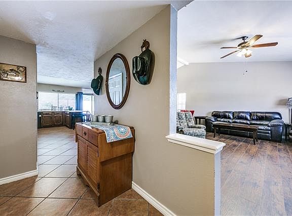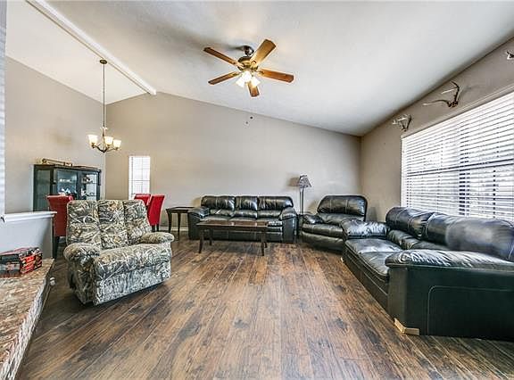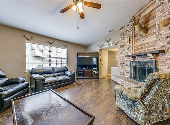Charming single story home w-a great location in Forney! Front features great curb appeal w-a brick elevation and a swing two car garage. Welcoming entry greets every guests! Large Living Room w-a beautiful brick fireplace, hardwood floors and vaulted beamed ceilings! Formal Living & Formal Dining Areas! Eat in Kitchen showcases a breakfast bar, ample cabinets, brick back splash, electric cooktop and tons of counter space! Light & Bright Throughout! Updates include title flooring, laminate in all bedrooms, Living areas and hallways! Great Sized Guest Bedrooms! Spacious Master Suite w-a sitting area has an en-suite bath with dual sinks! Entertain on the large covered patio that overlooks the yard & storage shed!