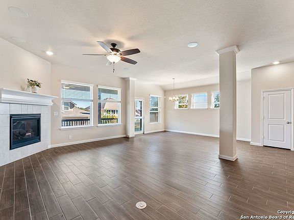 Exceptional Weston Oaks Home with Assumable VA Loan! Take advantage of a rare assumable mortgage (with lender approval and qualified down payment) offering excellent terms and long-term savings. Located on a quiet cul-de-sac in sought-after Weston Oaks, this well-maintained one-story features ~2,250 sq. ft., 3 bedrooms, 2 baths, a dedicated office space, and an oversized 2-car garage with heavy-duty storage shelving. Upgrades include new carpet, custom finishes, and large walk-in closets. The open layout leads to an entertainer's backyard with a covered patio, outdoor fans, epoxy flooring, and a surround-sound system ready for easy hookup. Solar panels will be paid off, giving you energy efficiency with no loan attached. Additional highlights include a cozy fireplace and smart home security. Situated in top-rated Northside ISD and minutes from major highways, shopping, and dining, this home offers comfort, convenience, and an outstanding financing opportunity.