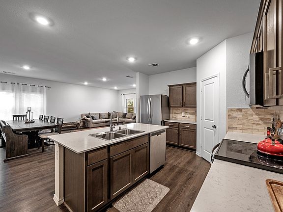 Formal dining areaSpacious family roomOpen kitchenCovered back patioOversized corner lotRoom for everyoneStone elevation