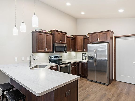 Beautiful zero-lot home on a oversized corner lot. Fabulous inside and and out. The home features 2 bedrooms and 2 full bathrooms on the main level with a open concept and gorgeous vaulted ceilings that overlooks the backyard with a sliding glass door onto the deck, soft close doors on cabinetry and under cabinet lighting in the kitchen. The lower level features two additional bedrooms with a spacious family room and third full bathroom. Outdoor living area perfect for a quiet evening enjoying the fenced in yard and covered porch or entertaining. Conveniently located close to the city and the countryside. Call to see your new home for the new year today!