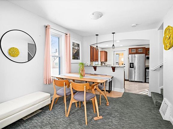 Absolutely adorable 2+bedroom 1.5 bath home set on a spectacular fenced double lot! This charming, move-in ready home has been tastefully updated throughout. The main floor boasts a delightful eat-in kitchen featuring beautiful cherry cabinets, granite countertops, a breakfast bar with pendant lighting, stainless steel appliances, and a back porch that leads to a generously sized deck and an amazing backyard. You’ll also find a cute full bath with a tiled tub surround and flooring, main floor laundry, and a versatile bedroom that can double as extra living space. Upstairs, enjoy a cozy rec area and two bedrooms, including one with a walk-in 1/2 bath and closet. The tidy basement provides great storage and potential for a workout or play space. Additional features include new windows, a gas stove, a 2-car garage, and off-street parking. Conveniently located within walking distance to Meyers-Wilkins Elementary School and Grant Park, this immaculate gem won’t last long!