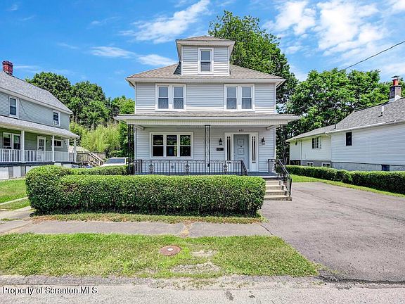 Pack your Bags! This beautiful 4 Bedroom, 1.5 Bath Move in ready home situated in North Scranton has been meticulously renovated throughout. Great size foyer with gleaming wood staircase, living room and dining room with recessed lighting and natural woodwork, Gorgeous eat in Kitchen with granite countertops and stainless appliances and first floor laundry in half bath. 2nd floor features 4 Bedrooms with stunning hardwood floors, restored original moldings and a modern Full Bath. Replacement windows throughout. Large paved driveway, Great Backyard. Low Taxes. You won't want to miss this!