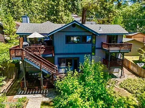 Luxury lakehouse property with lake views and a private beach. This home has 4 Bedrooms, 3 Full Bathrooms and a 3-Car Tandem Garage. Includes Washer/ Dryer and Refrigerator. Located 2 streets away (a 2-minute walk) from Lake Tahoe.